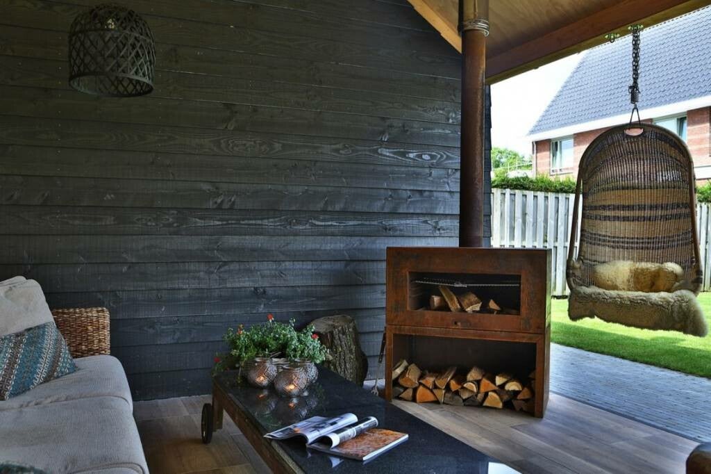 De tuinhaard dankt zijn kenmerkende karakter dankt aan de beschermende roestlaag. Deze varieert van warm oranje tot roodbruin. Tegelijk geeft de kleur uw haard ook een eigenzinnig karakter. Met de warme uitstraling van hout en de industriële touch van staal.